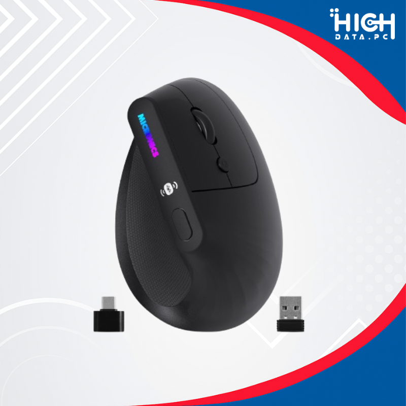 Mouse vertical Micronics BRICKELL MIC M755 diseñado para brindar mayor ergonomía y comodidad durante largas jornadas de uso. Su diseño reduce la tensión en la muñeca y permite conexión inalámbrica mediante Bluetooth o receptor USB, ofreciendo versatilidad y libertad de movimiento.