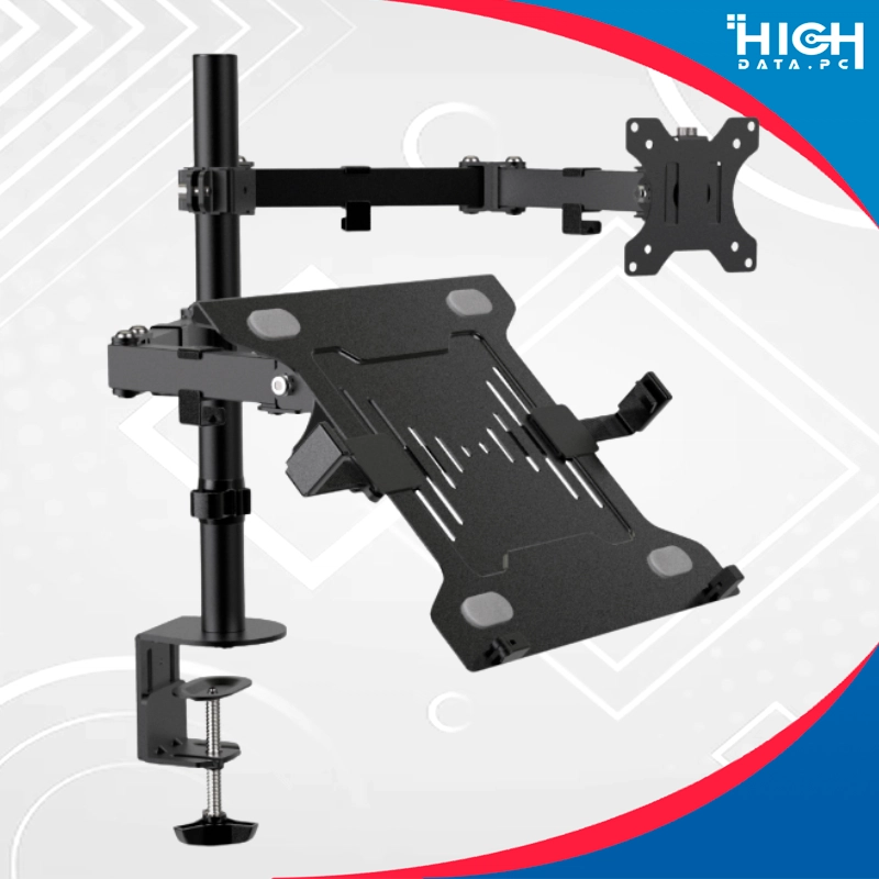 Este soporte para monitor y laptop es perfecto para monitores de 13 a 32 pulgadas y se puede instalar vertical u horizontalmente gracias a la placa con VESA giratoria de 360 grados específica. Además soporta una laptop de 10 a 15,6 pulgadas. Puede soportar un peso de hasta 8 kg del monitor y 4,49 kg de la computadora portátil. También incluye un sistema de administración de cables que los organiza y los mantiene ordenados.